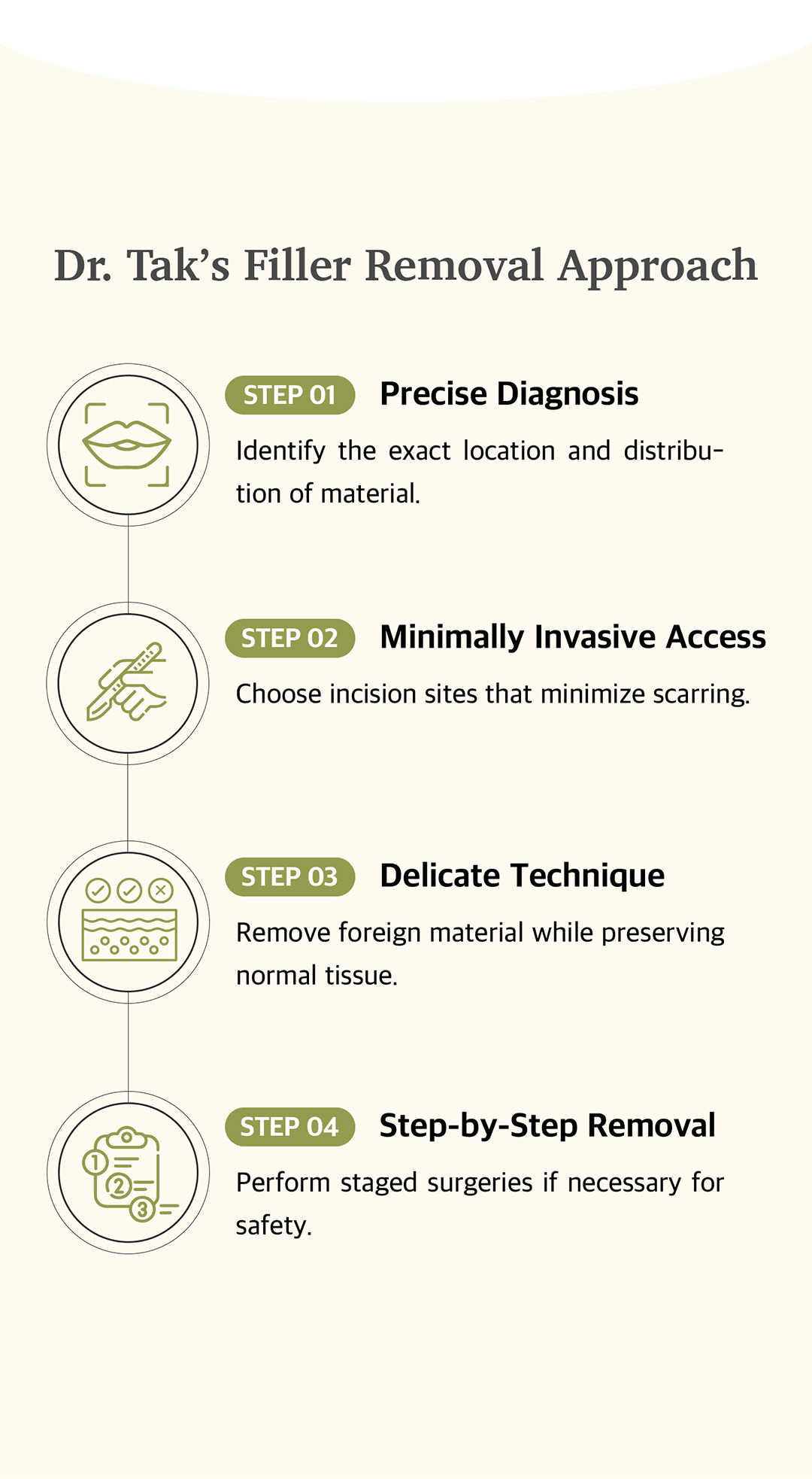The lips are one of the most delicate areas of the face, with a complex network of blood vessels and nerves. This is why safe and precise removal requires expert knowledge and advanced surgical skills. At Dr. Tak Plastic Surgery, we provide safe and effective removal based on specialized experience.
