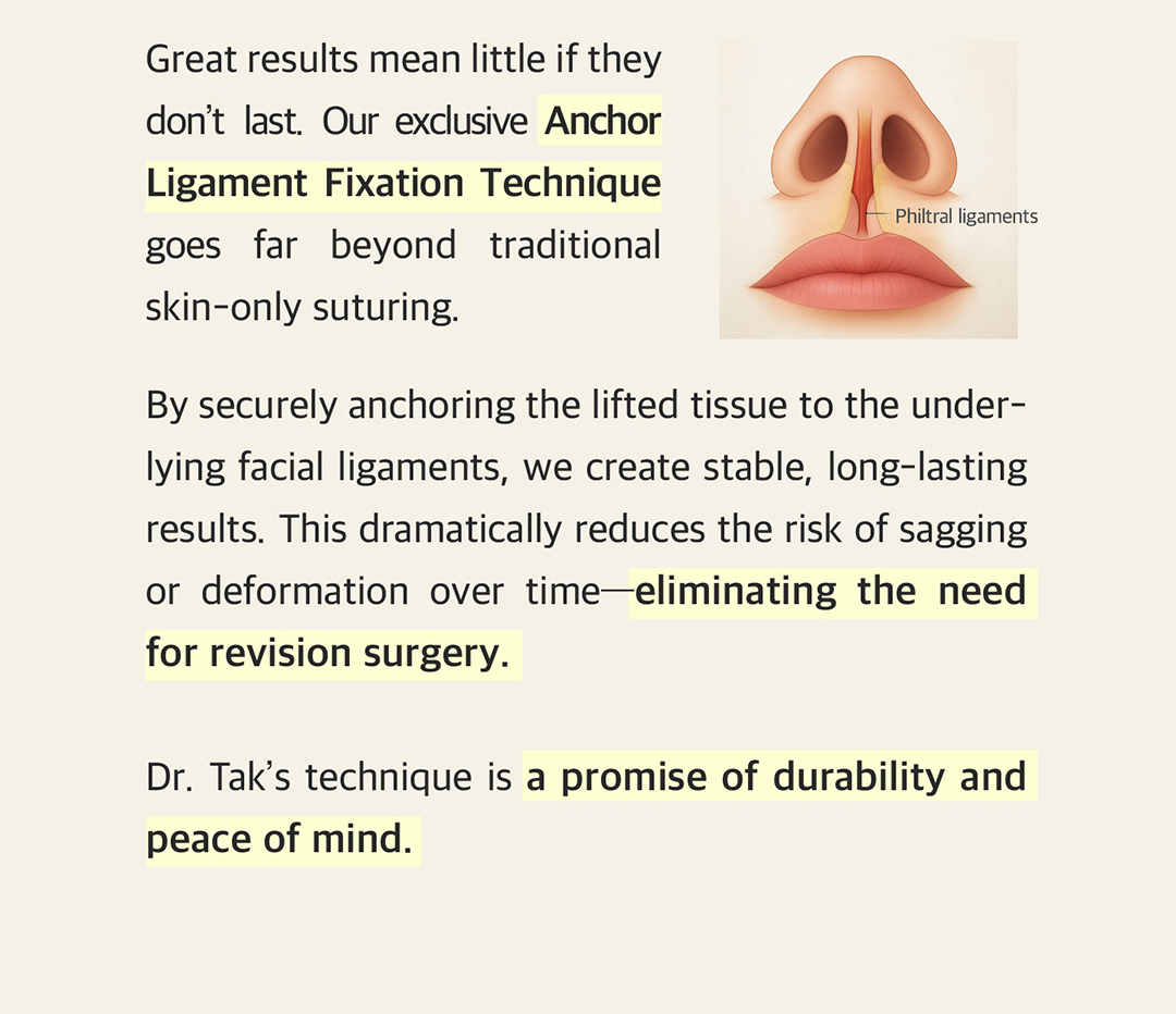 That’s why Dr. Tak has perfected an advanced micro-suturing technique to make the incision lines nearly invisible.