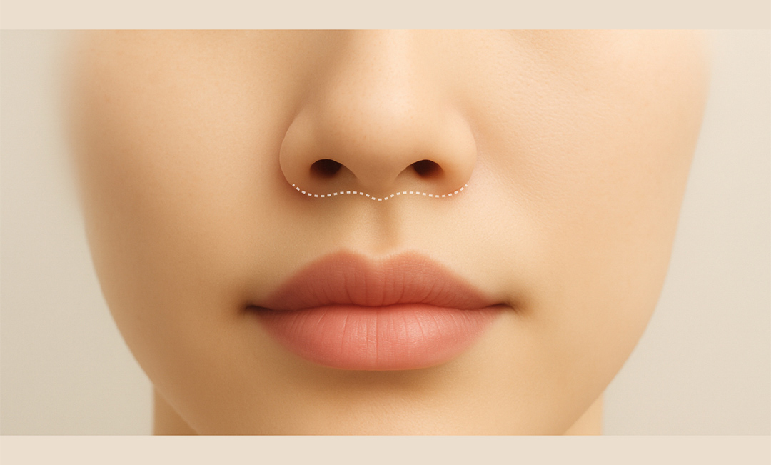 The space between your nose and upper lip—known as the philtrum—is where the eye naturally lands first.